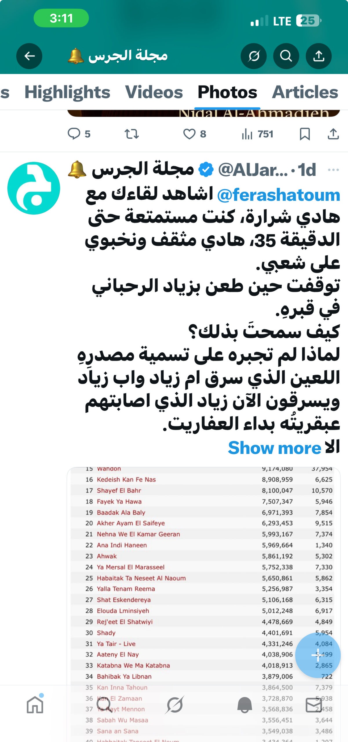 أليس غريبًا أن تبدأ هذه الشائعات بعدما أعلنتُ أن «سألوني الناس» وكيفك انت تتصدر كل أغاني فيروز على المنصّات الرقمية؟”
